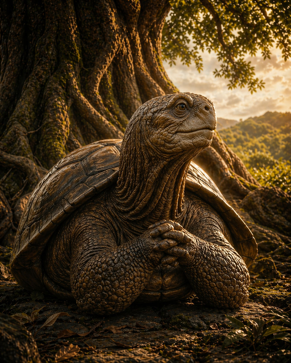Aru the Tortoise — a wise and silent observer of life; untouched by ego, identity crisis, fear, or the need to invent God as a concept.
